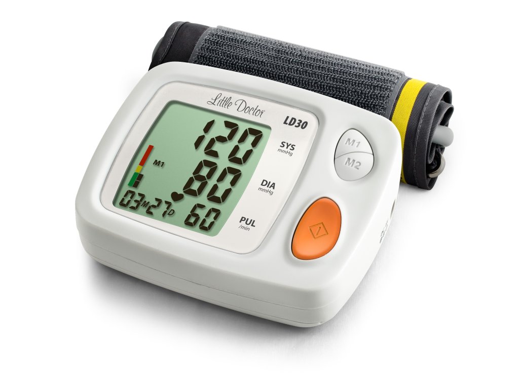 Automatický elektronický tlakoměr LD. Velký displej, standardní 25-36 cm manžeta, funkce zobrazení data a času.