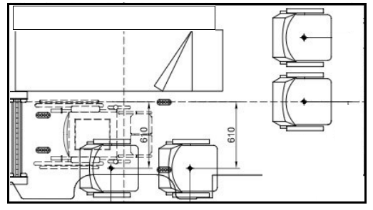 - Instalace dvou sedadel – pevných sedadel vybavených tříbodovými bezpečnostními pásy a integrovanými opěrkami hlavy za přepážkou ve směru jizdy